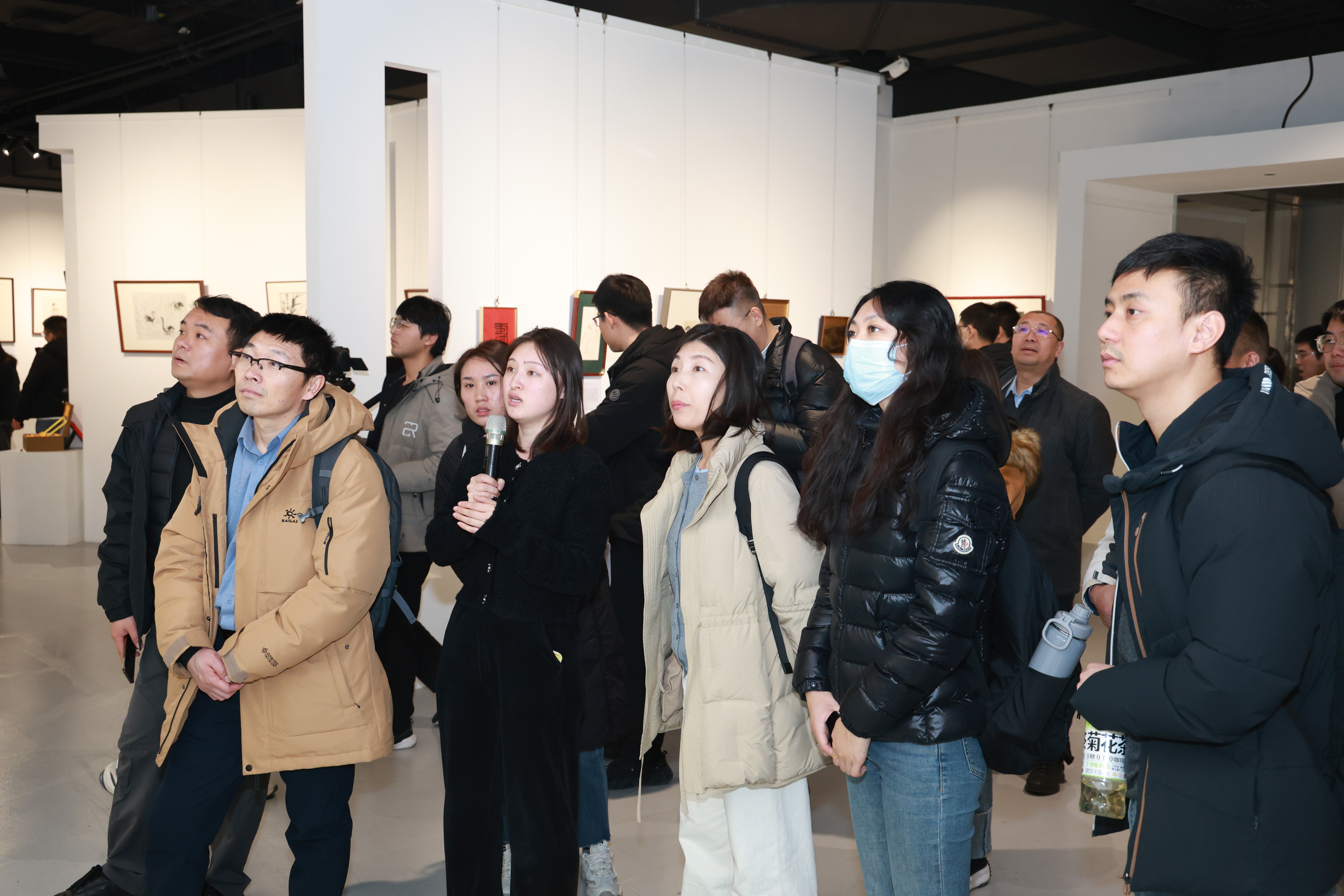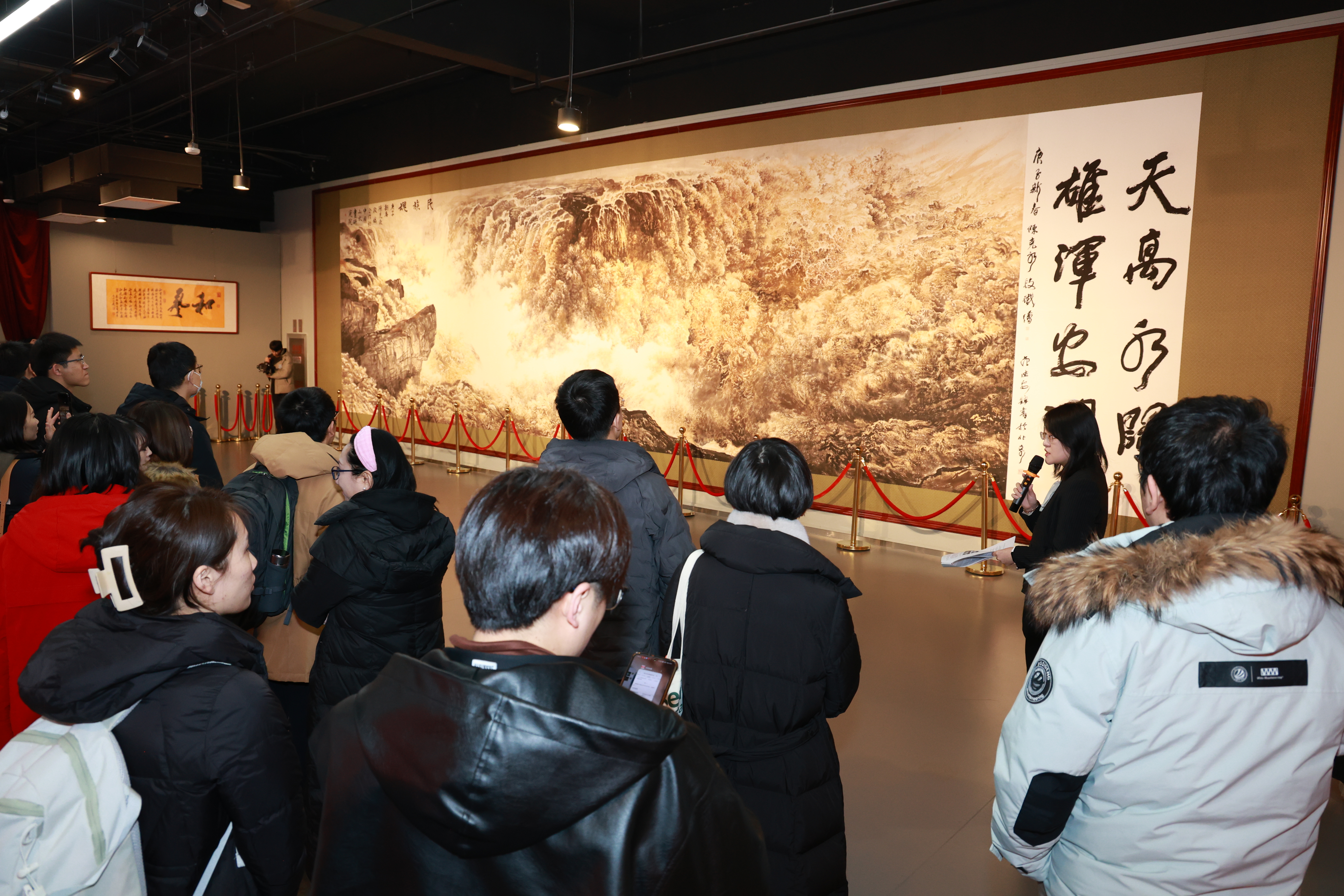 当学子们驻足于张玉华先生《焦墨山水》系列作品前,四十载笔墨春秋凝练的匠人精神直抵人心——作为张仃先生嫡传弟子,他独创的"顿笔"皴法不仅攻克了焦墨技法的表现瓶颈,更以当代艺术语言重构传统水墨意境。他的作品清新淡雅,笔墨意韵独特。学子们不仅感受到了艺术的魅力,更被艺术家们的坚持所感染。每一笔都是对专注力的极致考验,这种将简单做到极致的坚持,恰是企业文化建设的核心密码。