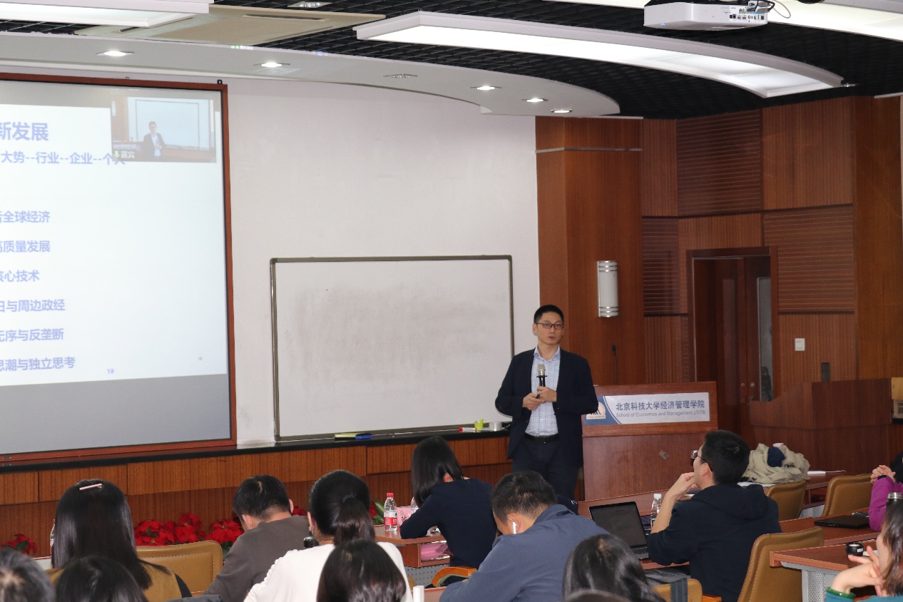 财务会计系寇明婷教授对本场讲座进行了总结发言,提出了我们作为北科大研究生,职业目标应该放在更远的位置上,要努力成为会计行业的高端人才。一是树立强基础,具有良好的职业道德,完整的知识结构,保持身体健康。二是实现软实力和硬实力兼并,掌握逻辑思维和分析能力,加强沟通和协调能力,努力成为能创造性解决问题的复合型人才。