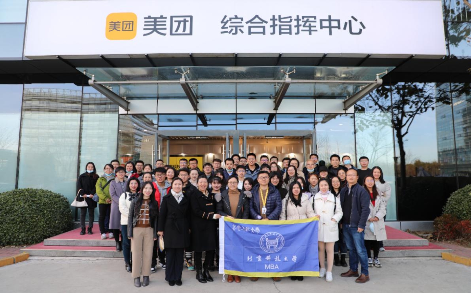 2020年11月20日下午,在工商管理系书记李晓辉副教授、工程管理与技术经济系副主任王震勤副教授、工商管理系姚卿副教授的带领下,北科大2020级MBA周末班同学们走进了国内最大的O2O消费全场景平台--美团公司,进行参观学习。