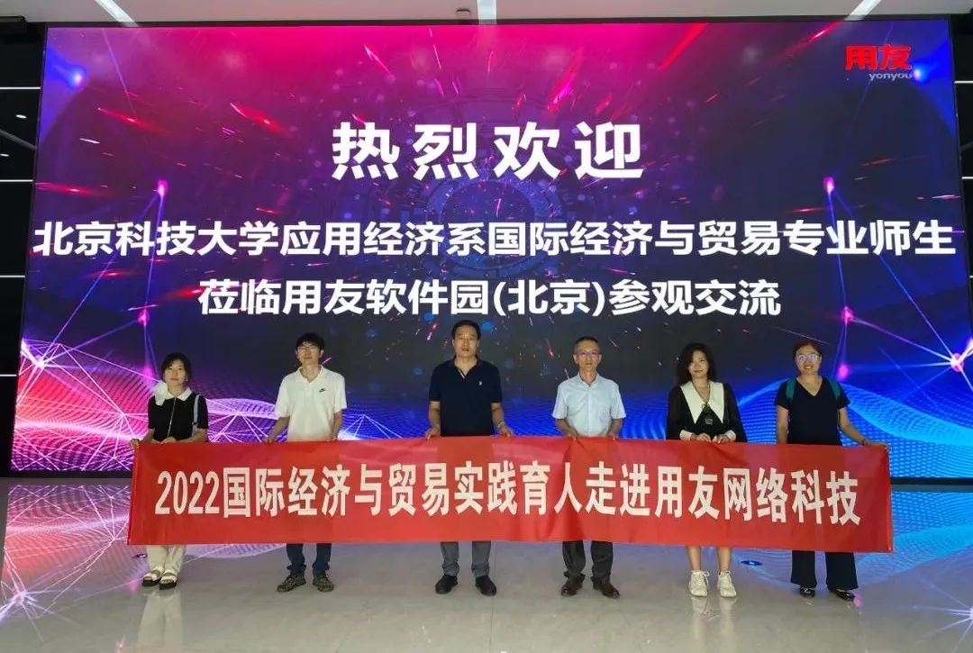 7月20日,bat365官方网站应用经济系国际经济与贸易专业实践育人活动以线上线下相结合的方式走进用友网络科技股份有限公司,参观了用友数智企业馆。用友是全球领先的企业云服务与软件提供商,致力于用创想与技术推动商业和社会进步。此次参观的数智企业馆是我国第一家真正展现数智化全貌的综合型、融合化、生态式数智企业体验中心,是用友对过去32年企业服务方面的经验总结和对未来企业服务的展望。本次认识实习暨实践育人活动采用“线下引领+线上协同”的形式,由应用经济系副主任马建峰副教授带领应用经济系俞峰老师、李侨敏老师以及学生代表哈嘉雯、尹胜辉实地参加,由应用经济系王凯副教授带领国贸20级全体学生一起在线同步参加了此次活动,会计等专业的学生也在线上观摩,线上人数共计百余人。