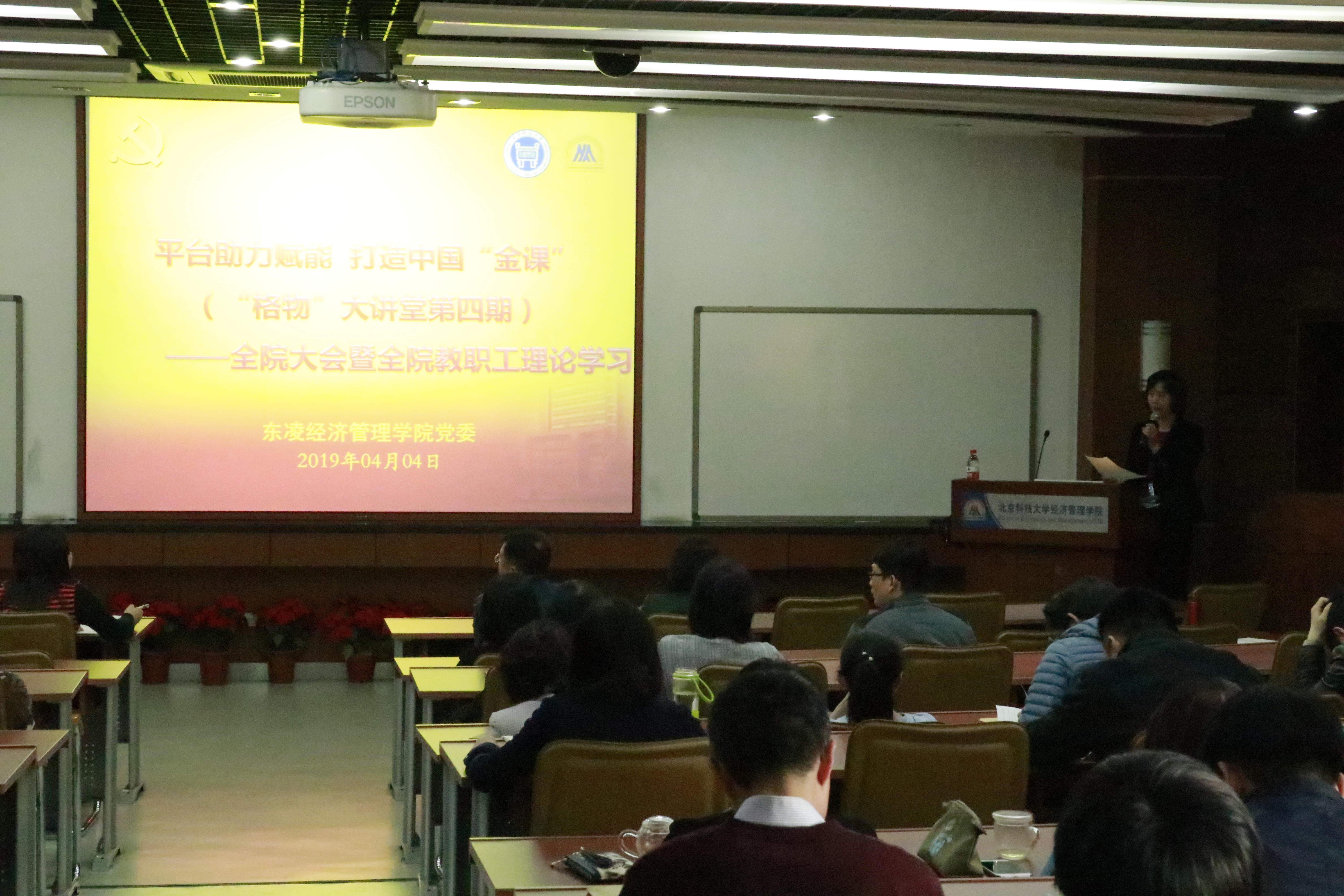 2019年4月4日星期四下午3点半,东凌bat365官方网站全院大会暨全体教职工专题理论学习会在经管楼313召开。