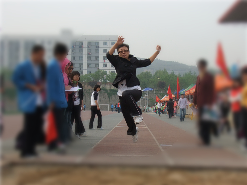 4月19日上午,必赢官网李彩虹老师在比赛中成功一跃,以3.15米的距离取得教工女子组跳远第四名的好成绩。