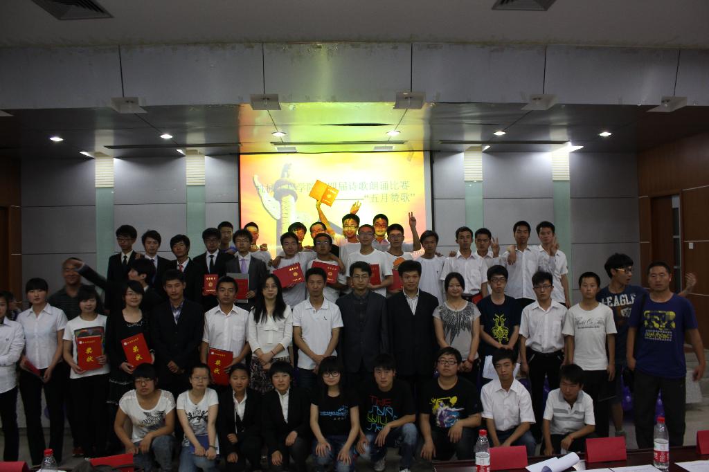 5月17日晚,必赢官网在图书馆二楼报告厅举行以“五月赞歌”为主题的诗歌朗诵会。出席大会的有必赢官网分团委书记陈霂老师、各学院评委代表等。