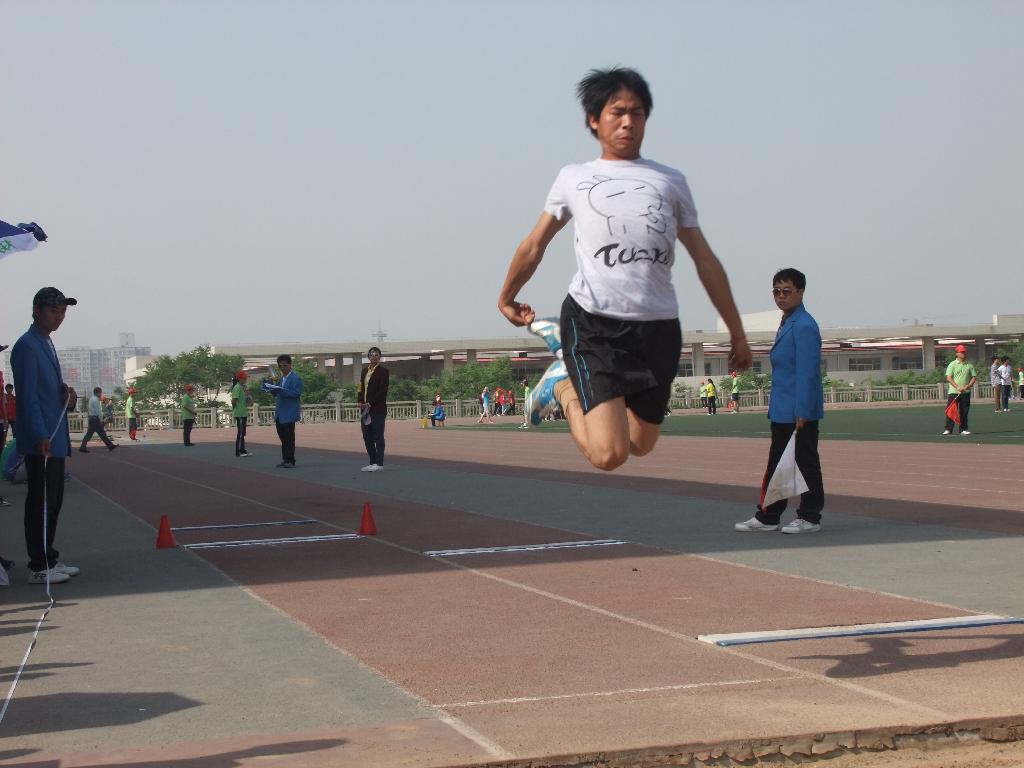 在本届运动会上刚结束的男子三级跳比赛中,叶宇、于树亮两位健儿代表必赢官网征战田径场。