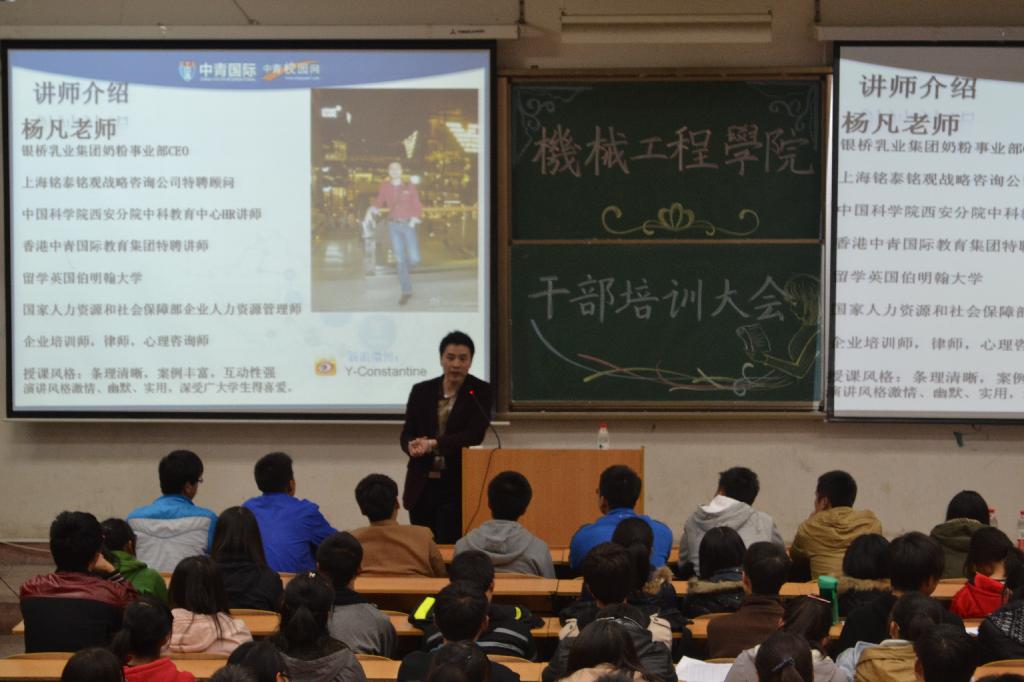 11月13日晚,必赢76net线路官网于3教217举行干部培训大会,此次培训诚邀中青国际的杨凡老师为大一新生干部作演讲。