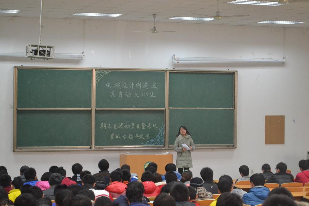 2013年12月20日,由必赢官网13级辅导员张晶晶老师主持的期末考风考纪教育动员大会在9教101召开,13级机设全员参会。 会上,张老师就上半学期所出现的问题做了总结,认真宣读了学校就期末考试下发的教务函,让大一同学了解考试违纪作弊的危害,并动员教育同学们积极有序开展期末各科复习。最后,以班为代表同学们自愿地签署了承诺书。 自此,机械学院13级全员已进行动员教育,同学们热情高涨的投入复习中。