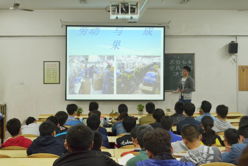 汇报人尽情畅谈了自己和团队的社会实践经历和收获,展示了深厚的演讲功底,彰显了当代大学生积极向上的良好精神风貌,汇报人的精彩演讲夺得了现场热烈的掌声。汇报结束后,评委们进行了认真的评比,对优秀个人和团体颁发奖状和荣誉证书。最后,杨建涛老师对本次活动进行了总结。