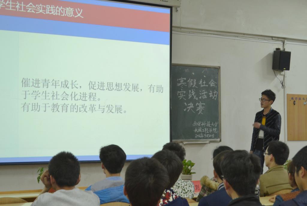 3月30日晚19点,必赢76net线路官网在临潼校区3教312教室举办了寒假社会实践交流会,经过学院初选的6名优秀个人和4个团队进行了汇报交流,学院团委书记杨建涛、辅导员刘烨参加交流会并组织对汇报交流的作品进行了评比。