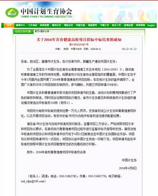 近日,中国计划生育协会公布了2016年青春健康高校项目的中标高校名单。经过市、省、国家三级计划生育协会的严格审核、筛选,最终必赢官网分团委组织申报的“青春健康不任‘性’”项目成功中标,成为陕西省高校项目中标的9所高校之一。