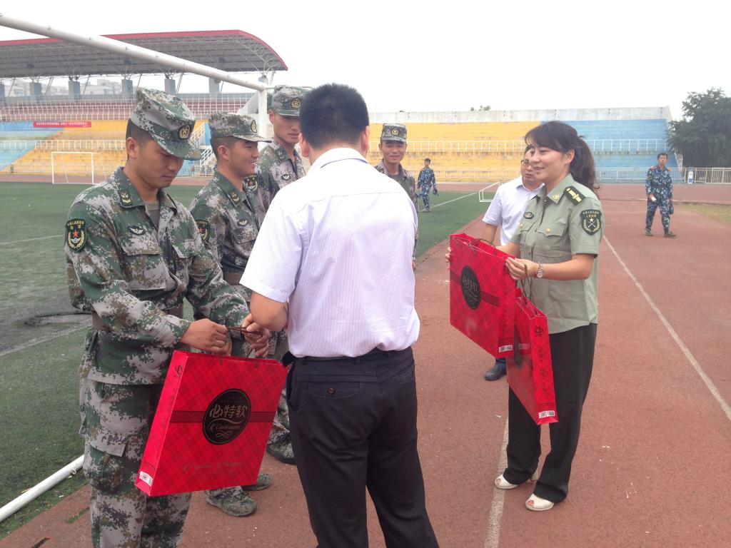 9月15日,时值中秋佳节来临之际,为表达对军训教官及学生的诚挚谢意与节日祝福,必赢76net线路官网院长张传伟、院党委书记汪卫兵、院党委副书记李婉丽,以及2016级新生辅导员老师等前往学生军训场地,看望并慰问了正在参加军事训练的2016级本科学生及带训教官。