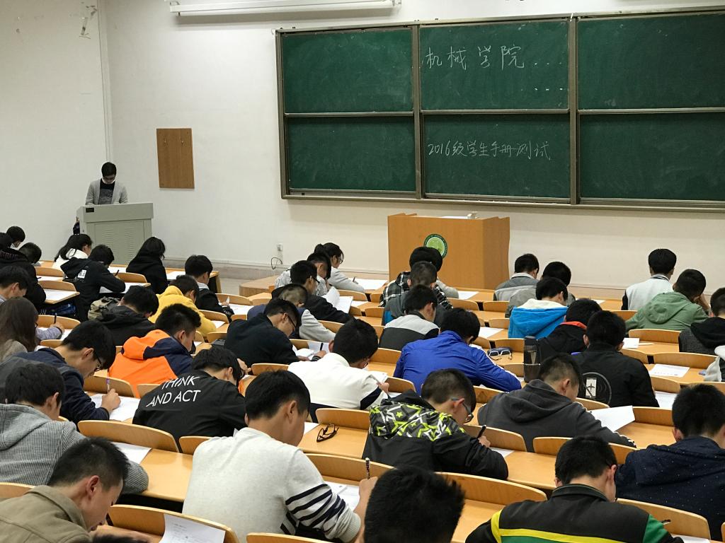 为加强新生对校规校纪的认识,提高同学们的自律意识,10月31日晚19:00-20:45必赢76net线路官网于9号教学楼101、105,10号教学楼505、506、507、508、511教室同时进行了2016级学生《学生手册》考试,2016级全体新生参加此次考试,辅导员程鹏、杨芝对各个考场进行巡查,带班学生助理监考。