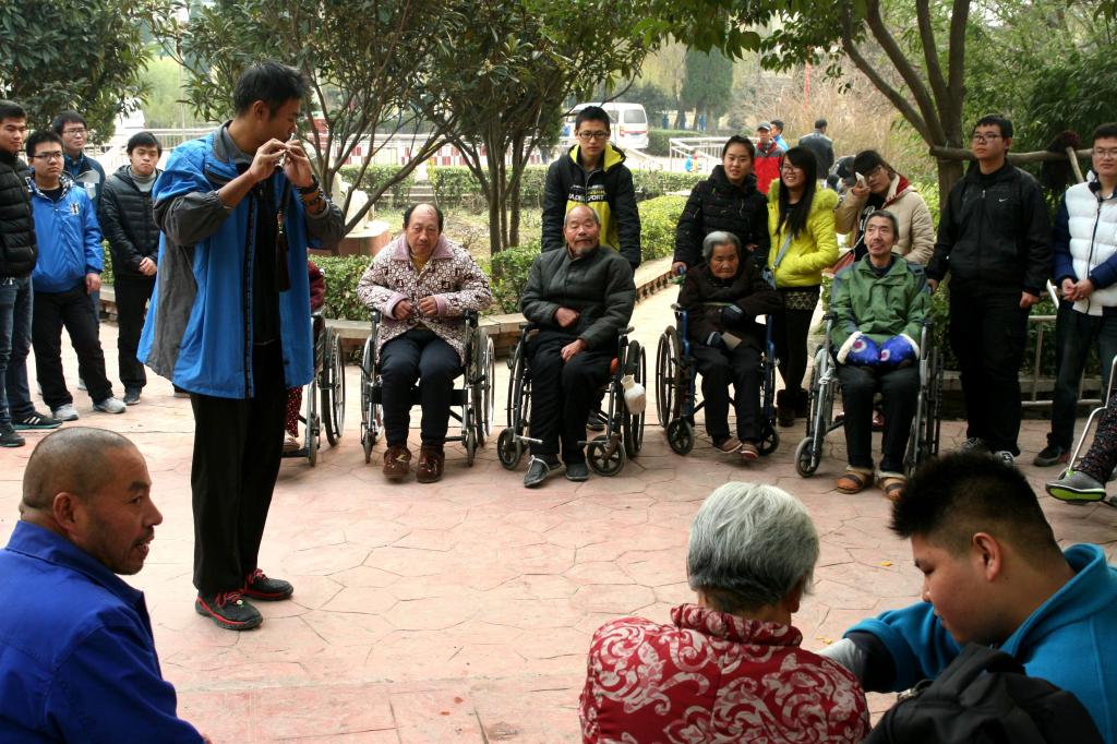 走进敬老院,志愿者们先和老人互相认识,并为老人带来了水果、油茶等慰问品,还准备了文艺节目送给老人们。敬老院里顿时萦绕着欢声笑语。在整个志愿活动开展期间,志愿者们有的到各个房间,陪老人们拉拉家常、讲讲笑话和养生小知识,给老人们带去欢笑和快乐;有的帮助老人整理内务,打扫卫生,捶捶背,使老人变得轻松;有的到户外和老人聊天,听老人讲讲过去,讨论一下现在,不仅使老人摆脱了寂寞,也使自己受到了教育。看到老人们灿烂的笑容,听到老人们爽朗的笑声,志愿者们充分体会到了本次志愿活动的意义所在——弘扬志愿精神,关注老年群体。