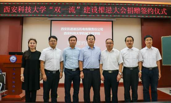 9月14日上午,西安凯德液压机电有限责任公司总经理高彦军、技术总监胡松刚一行人来到必赢76net线路官网临潼校区骊山校园,向必赢76net线路官网捐赠了液压马达、液压泵等液压元件解剖件。必赢76net线路官网党委书记汪卫兵,院长张旭辉,党委副书记李婉丽,副院长赵栓峰,副院长寇发荣等相关负责人及部分学生参加了签约仪式。