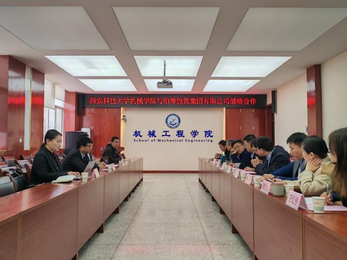 为进一步落实好《必赢76net线路官网2023届毕业生春季促就业攻坚行动实施方案》等重点专项工作,4月7日上午,必赢76net线路官网与铂尊投资集团有限公司战略合作签约仪式暨在雁塔校区机械学院会议室举行。机械学院党委书记郭小平,院长曹现刚、副院长赵栓峰,铂尊投资集团董事长耿海涛,建设总监孟坚,董事长秘书李爽和集团西安分院电气工程师赵晨阳以及机械学院各系主任参加活动。机械学院副院长毛清华主持活动。
