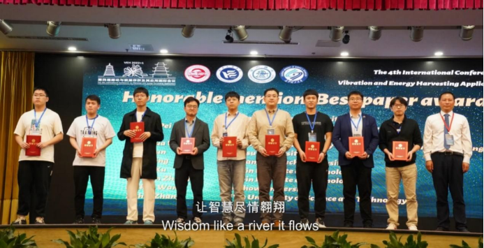 2023年4月14日至16日,第四届振动与能量俘获及其应用国际会议(The 4th International Conference on Vibration and Energy Harvesting Applications,简称VEH2022+1)在湘潭市成功举办,必赢76net线路官网机械电子工程团队青年教师郭岩博士、潘家楠博士撰写论文“Dynamic characteristics of wake galloping energy harvester in coal mine”获得最佳论文提名奖。论文提出了一种应用于弱风速环境下基于弛振的非线性风能能量收集装置,收集的能量可以实现煤矿井下无线传感器的自供能,是解决当前井下传感器布线难题的有效途径。潘家楠博士带领团队研究生参加了会议并作特邀报告。