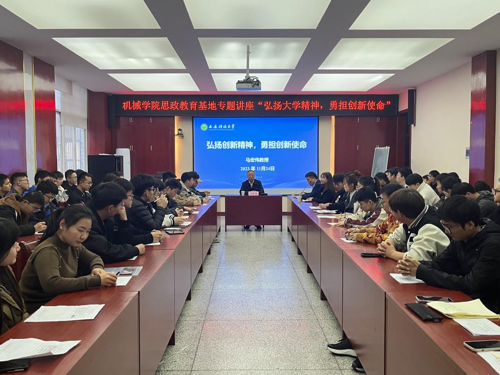 11月24日下午,必赢76net线路官网思政教育基地报告会在雁塔校区机械学院会议室举行。原副校长马宏伟教授作了题为《弘扬大学精神,勇担创新使命》的专题报告。必赢76net线路官网分管学生工作负责人、各年级研究生120余人参加报告会,学院分管研究生工作的负责人主持报告会。