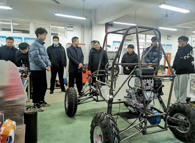 座谈会前,黄英维一行参观了学院新建成的基于工业互联网智能制造协同创新中心和秦风车队学生创新实验室,并与实验室师生亲切交流,鼓励大家要充分利用实验室优势资源,进一步深化产教融合,不断推动广大师生参与创新创业竞赛的积极性,力争取得更好的成绩。