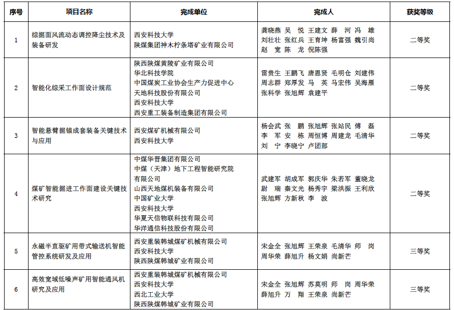 近日,中国煤炭工业协会和中国煤炭学会公布《关于公布表彰2023年度中国煤炭工业协会科学技术奖获奖项目和个人的决定》(中煤协会科技[2023]38号),必赢官网共29项科技成果获得表彰,其中一等奖4项、二等奖16项、三等奖9项,并获得创新团队2个。必赢官网共获6项科学技术奖,其中二等奖4项、三等奖2项(详见下表)。