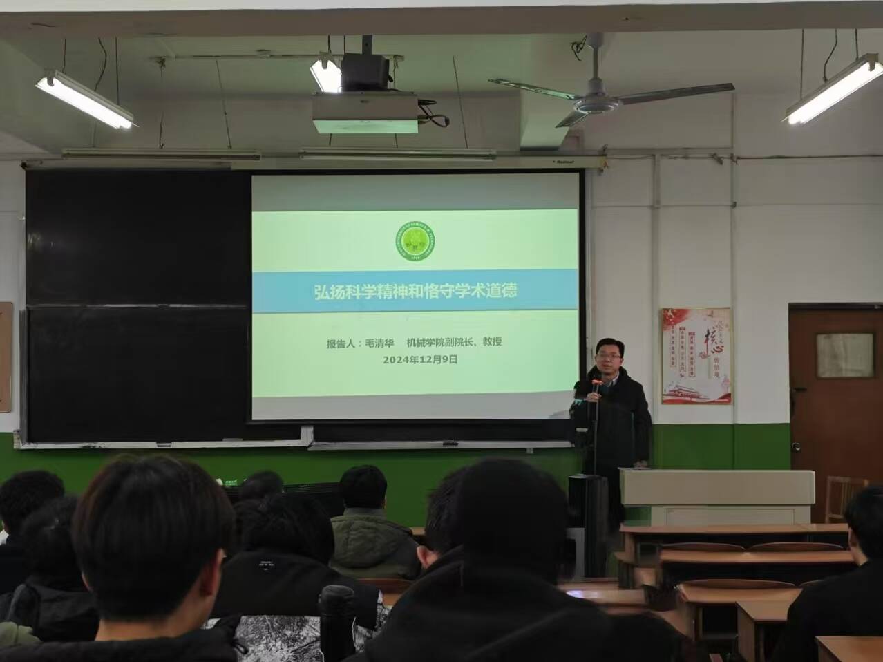 为在进一步强化研究生科学道德与学风建设,为2024级博硕士新生铺设坚实的科研学习基石,同时深化对学术道德规范的认知,共同营造更为纯粹与浓厚的学术氛围,必赢76net线路官网于12月9日下午,在雁塔校区主楼401教室,举办“科学精神与学术道德”主题报告会的第二讲。报告会由机械学院副院长毛清华教授主讲,全体2024级博硕士生参加了报告会。