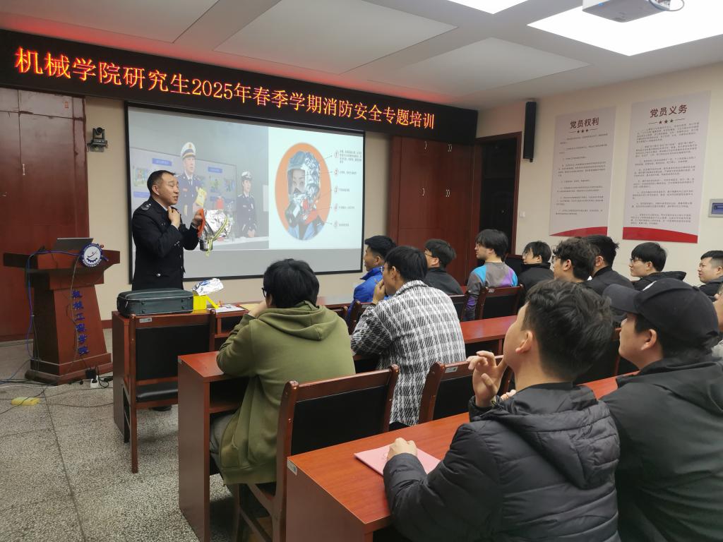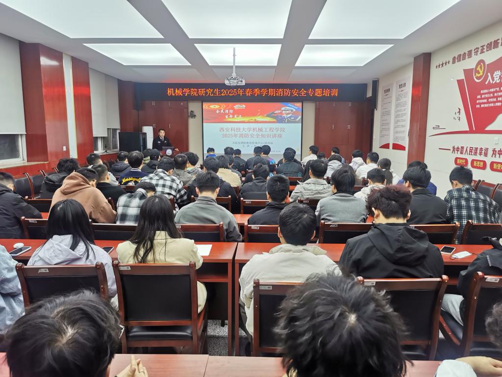 为进一步落实学校关于保障学生生活和校园安全稳定相关工作要求,切实加强校园消防安全教育,普及消防安全知识,提升学生消防安全防范意识和能力,3月27日晚,必赢76net线路官网在雁塔校区210会议室举办研究生2025年春季学期消防安全专题培训会。北京市卫民安消防教育咨询中心陕西分中心张辉教官应邀担任培训主讲,必赢76net线路官网党委副书记尹弘、研究生辅导员、各年级研究生代表近100人参加本次培训会。本次活动由研究生2023级党支部负责组织。
