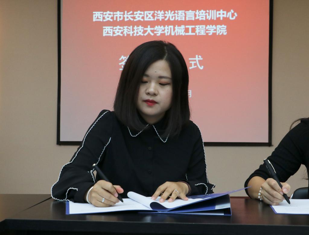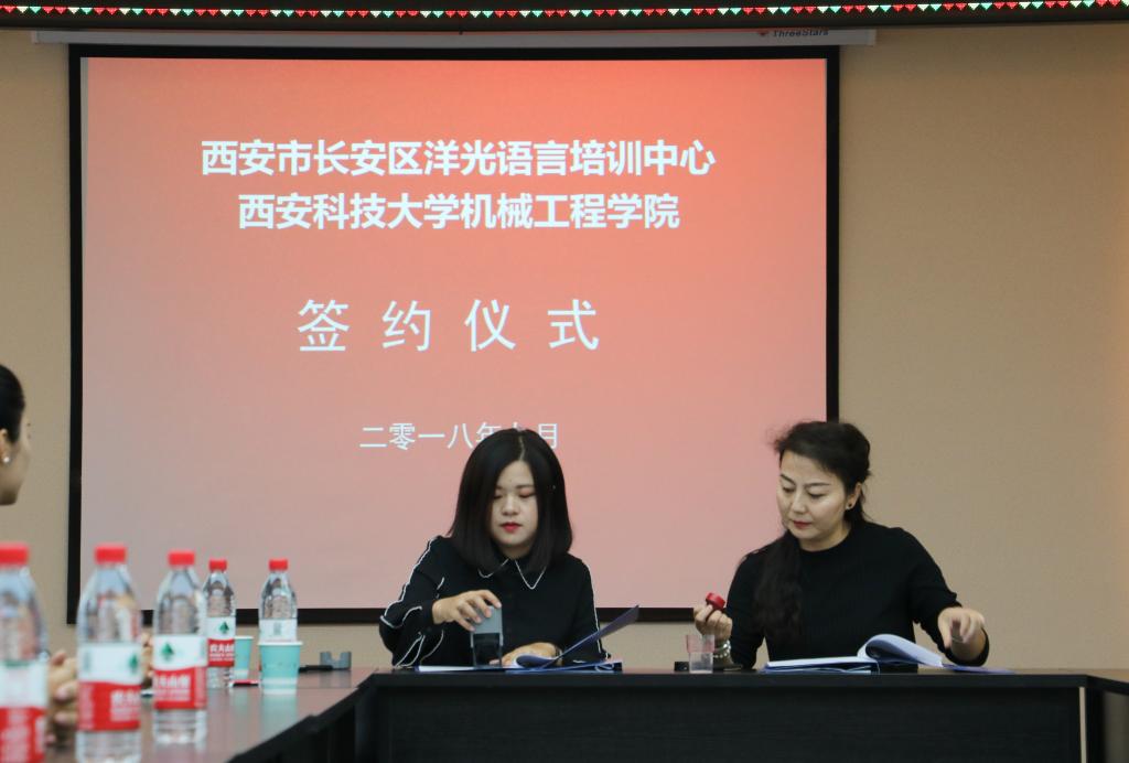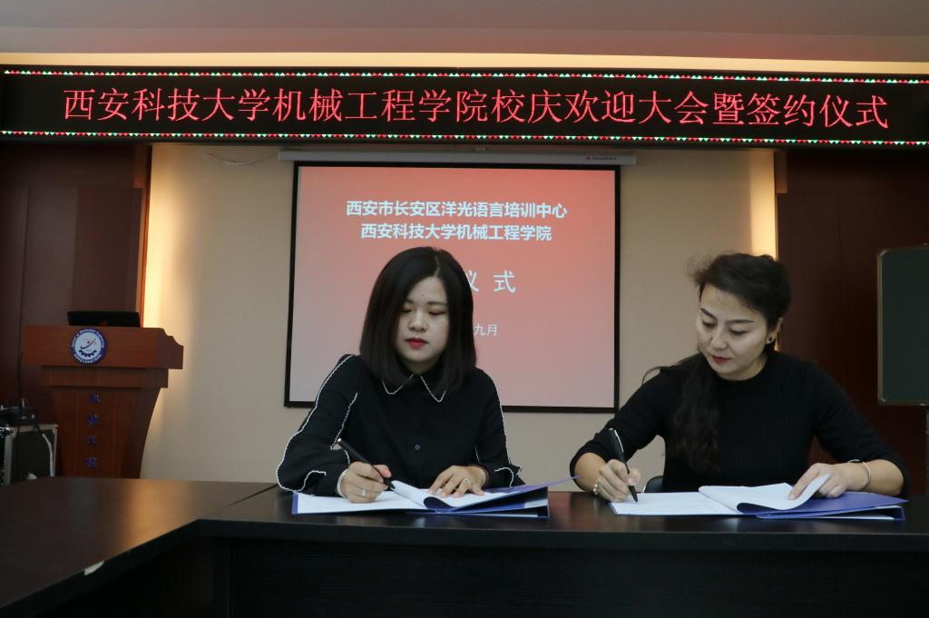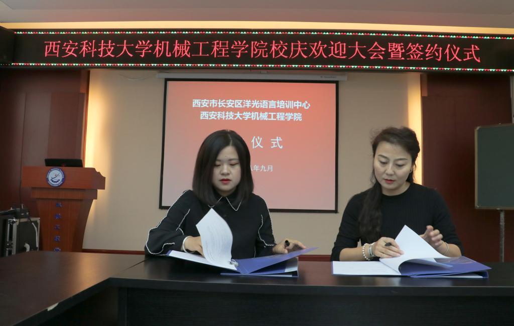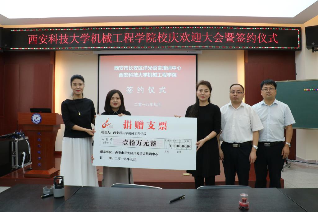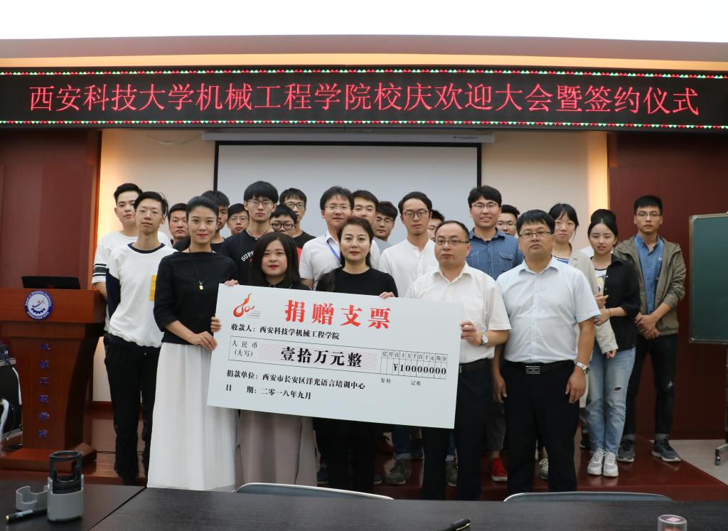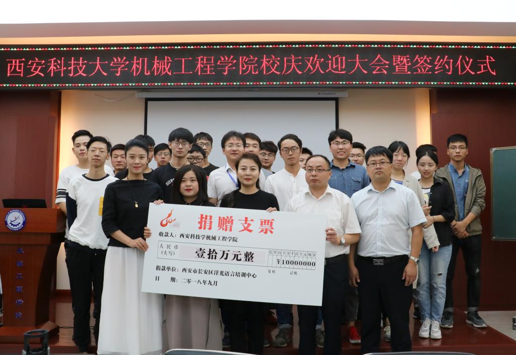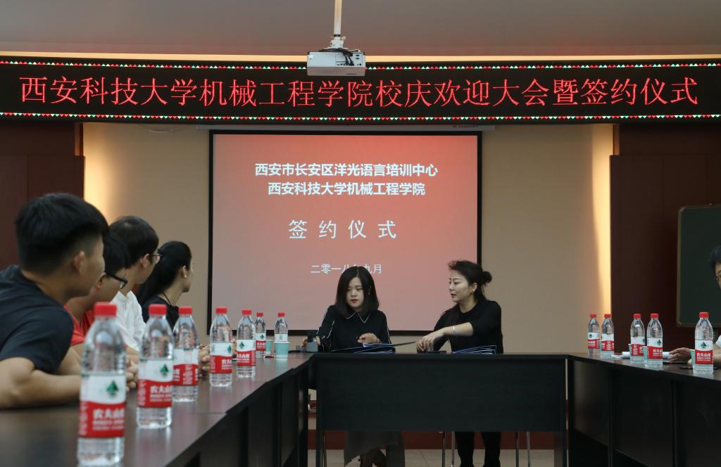2018年9月14日上午,洋光外语外语培训机构一行人赴必赢76net线路官网签署阳光外语—必赢76net线路官网企业捐赠协议,签约仪式在临潼校区机械学院会议室进行,仪式前双方就人才培养、外语教学等议题进行了友好深入的交流,并由洋光外语培训机构与必赢76net线路官网分别代表两家单位签署了捐赠协议。参会的学院领导有机械学院党委书记汪卫兵、院长张旭辉、党委副书记李婉丽、副院长寇发荣,学院30余名师生也参加了签约仪式。