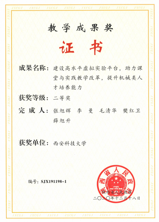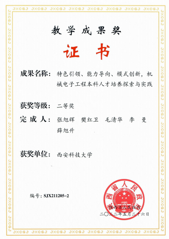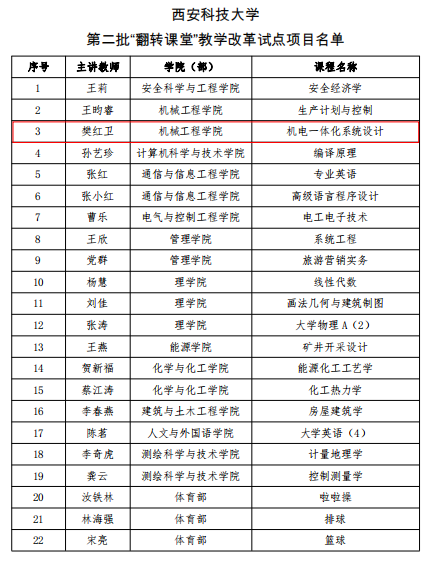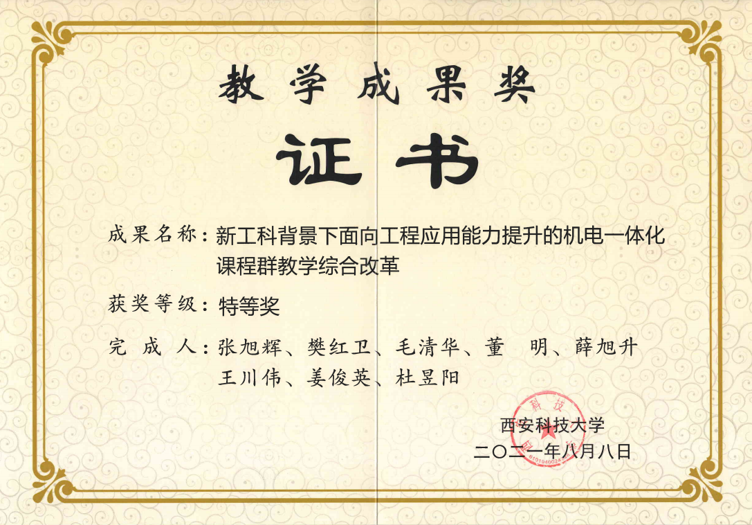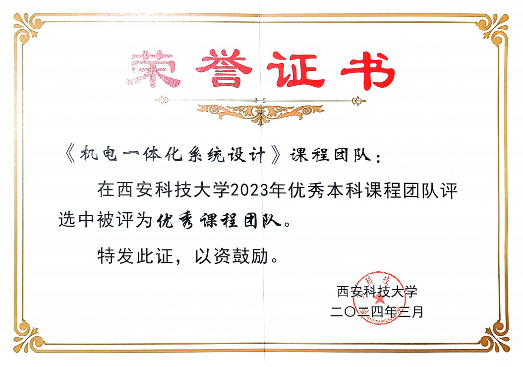 必赢76net线路官网《机电一体化系统设计》课程组在张旭辉教授、樊红卫副教授带领下,坚持为党育人,为国育才,立德树人根本宗旨,从教材编写到课程建设,开展了全方位的教育教学改革,入选了陕西省一流课程,支撑了机械电子工程专业入选国家级一流专业建设点。主要建设成果如下:
