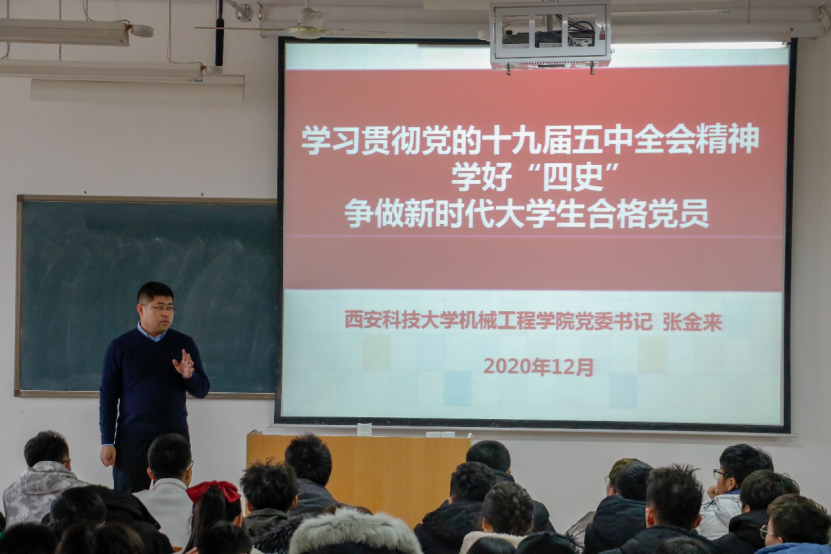 为深入学习贯彻习近平新时代中国特色社会主义思想,落实教育部在高校师生中开展“四史”教育的相关通知,进一步坚定对马克思主义的信仰、对中国特色社会主义的信念、对实现中华民族伟大复兴中国梦的信心,12月4日,必赢官网党委书记张金来以《学习贯彻党的十九届五中全会精神、学好“四史”——争做新时代大学生合格党员》为题在为自己所在支部党员和学员入党积极分子上了一堂生动的党课。