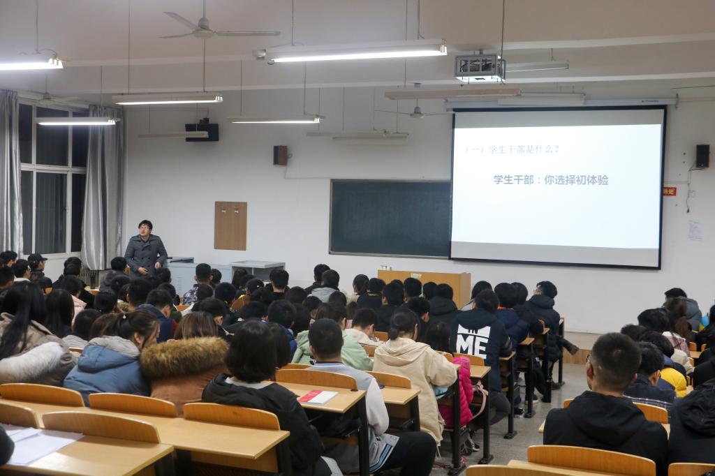 2018年11月19日晚,必赢76net线路官网于九教104教室举行了党员干部培训大会第二讲,必赢76net线路官网团委书记周学刚担任此次会议的主讲人。