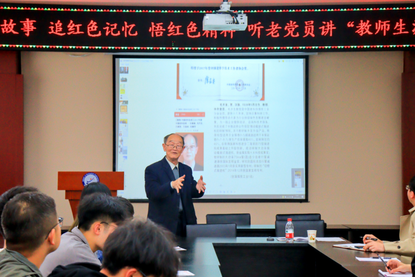 机械学院退休老党员,博士生导师毛开友教授结合校史、院史,为同学们做了主题为《大学生成长成才与中国梦-培养社会主义合格建设者和接班人》的精彩报告。八十三岁高龄的毛教授精神矍铄,饱含激情与同学们分享了自己年轻时的学习科研实践经历,并结合智能矿山机械发展,围绕“振动截割式掘进机”“切楔振动覆带式采煤机”“星齿行星减速器等技术”等科研内容,就采煤机、掘进机设计、生产制造中容易出现的问题、难点以及解决思路和具体措施等进行了详细生动的讲解。期间,他特别提到正是自己青年时期与农民共同生活劳作的经历,培养了他吃苦耐劳的精神品格,坚定了他加入中国共产党,全心全意为人民服务的决心,并勉励学生在党的领导下,刻苦学习,突破思维定势,练就真才实学,勇于创新,为国家建设发展做出大的贡献,并深情寄语机械学子:“走好路,走大路,把路走好,走向光明!”车辆2001班的雍皖苏说,榜样的力量是无穷的。看到年至耄耋的毛教授至今依然没有停下自己对于学问的追求,依然在发光发热,让我深受感动!当前,我国正处于实现中华民族伟大复兴关键时期,世界正经历百年未有之大变局。我立志要向毛教授学习,努力学好专业知识,成长为国家和社会所需的社会主义合格建设者和接班人!机设1901班的史璐阳说,毛教授的生动讲述让我深切体会到学问需要持之以恒的坚持,更需要有理想明灯的指引,作为新时代大学生,我们不仅要在学习上要勇攀高峰,要听党指挥跟党走,勇担时代责任,练就真才实学,让自己的青春在不懈奋斗中绽放绚丽之花!机卓1801班的任昊说,八十三岁高龄的毛教授全程站着为大家讲了一堂生动的党史、校史课,他的敬业精神令人感动;他的科研经历,服务社会的卓越贡献深深地鼓舞了我!我将以毛老先生为标杆,坚定理想信念,刻苦学习,努力成长为祖国的建设发展做出积极的贡献!车辆1702班的张新刚说,听完毛教授讲授的生动校史、院史,我的心情久久不行平静,毛教授的奋斗人生经历极大地鼓舞了我勇攀科研高峰,砥砺前行的勇气,我将在今后的学习、工作中奋发有为,学以致用,以实际行动传承西科老一辈党员的求真务实的优良品质,努力成长为堪当民族复兴重任的时代新人......