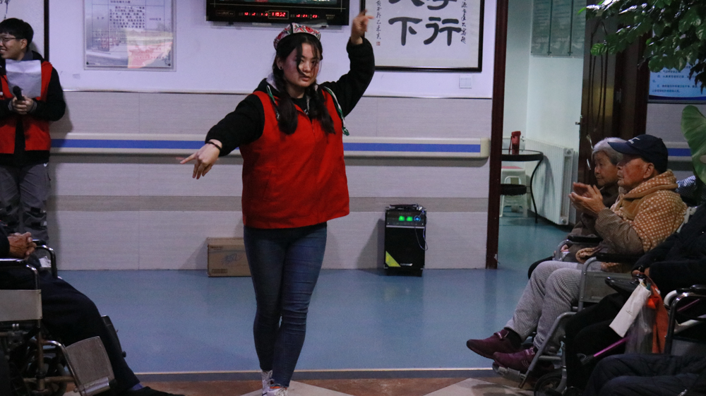 下午一点志愿者们分三队从必赢76net线路官网出发分别前往芙蓉源敬老院,芷阳湖敬老院,金秋敬老院。到达之时老人们还在午睡,志愿者们便亲自动手,帮助老人们打扫了院子内的落叶。细心的志愿者们还准备了文艺节目送给老人们,敬老院里顿时萦绕着欢声笑语。除此之外,志愿者们还自发地购买了水果,蛋糕和冬季用的口罩等慰问品,在演出的最后分发给了老人们。