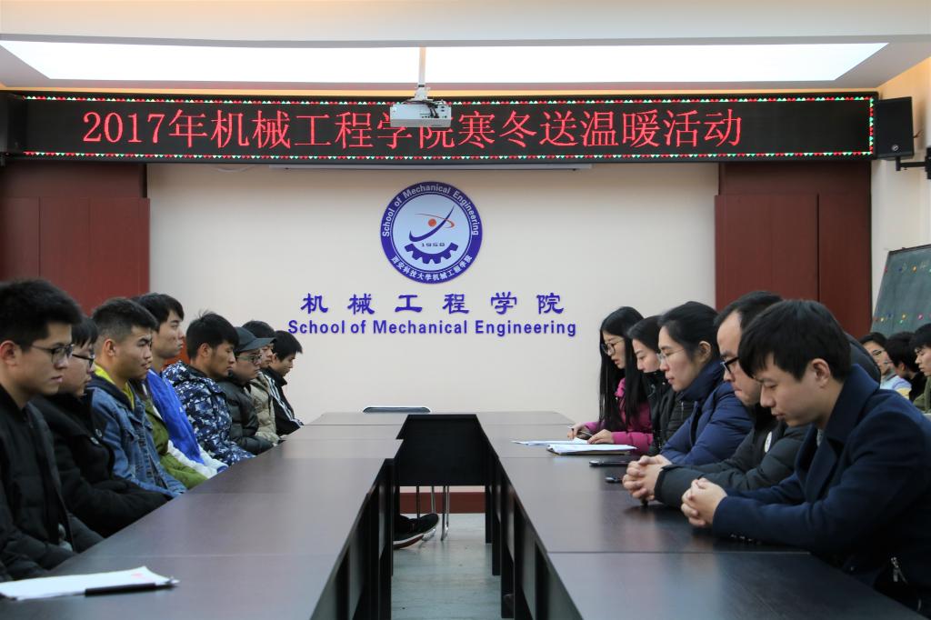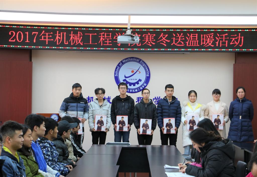 2017年12月18日,为切实解决家庭经济困难的学生寒冬御寒问题,关心和帮助经济困难同学,为他们送去温暖,必赢76net线路官网在十教320会议室举行了寒冬送温暖活动。必赢76net线路官网党委副书记李婉丽老师、各级辅导员老师及受助学生共同参加了此次活动。