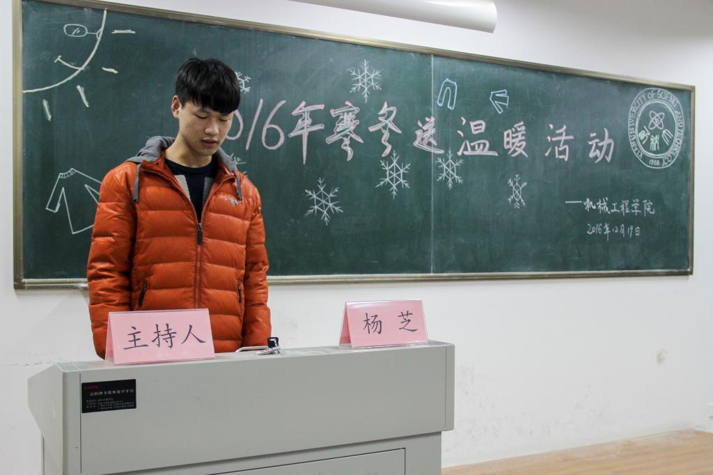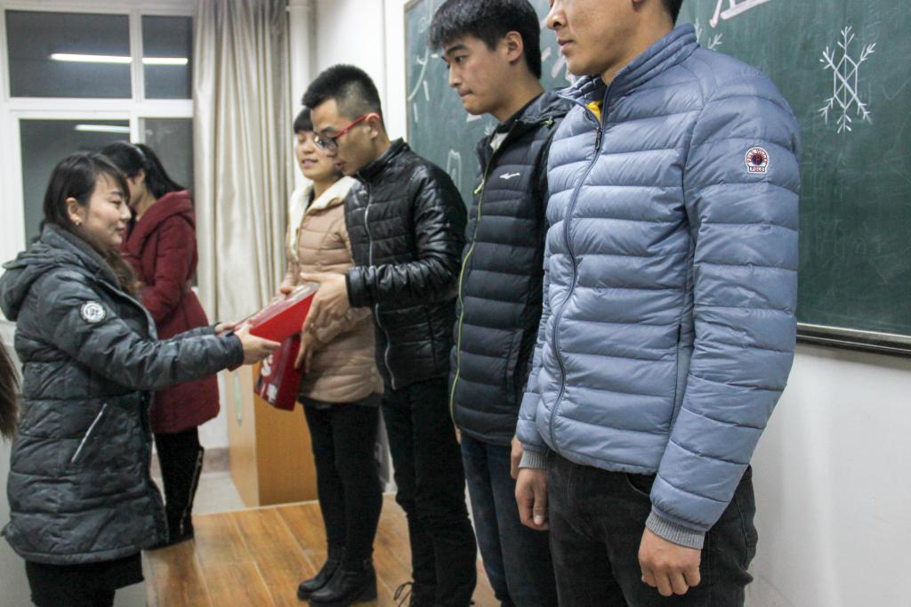 年年寒冬送关爱,情暖学子创和谐。随着天气逐渐转寒,为切实解决学生的御寒问题,12月19日晚18点机械学院在十教501教室举办了寒冬送温暖活动。本次活动由2016级辅导员杨芝老师主持,机械学院党委副书记李婉丽老师,机械学院全体辅导员老师以及获得寒冬送温暖资助的全体学生参加。
