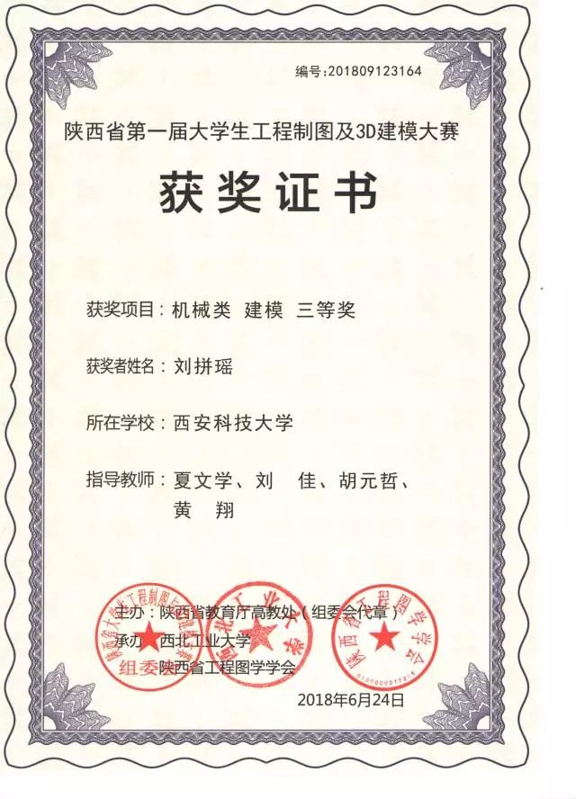 本次大赛是经陕西省教育厅高教处批准,陕西省大学生工程制图及3D建模大赛组委会主办的大学生学科竞赛,目的在于引导高校培养大学生的工程实践能力、综合设计能力、创新意识和团队协作精神,为优秀人才脱颖而出创造条件。本次大赛共有40多所高校的560多名大学生参加。