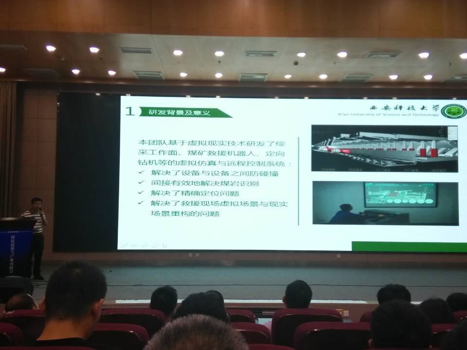 本次科技成果与产业及金融机构对接会共发布了8项成果,其中必赢官网毛清华副教授发布了“煤矿设备虚拟仿真与远程控制系统”技术成果,主要介绍了煤矿救援机器人、采煤机和定向钻机等的虚拟仿真与远程控制系统,主要应用于煤矿救援、煤矿设备三维可视化远程控制与虚拟操控培训等。