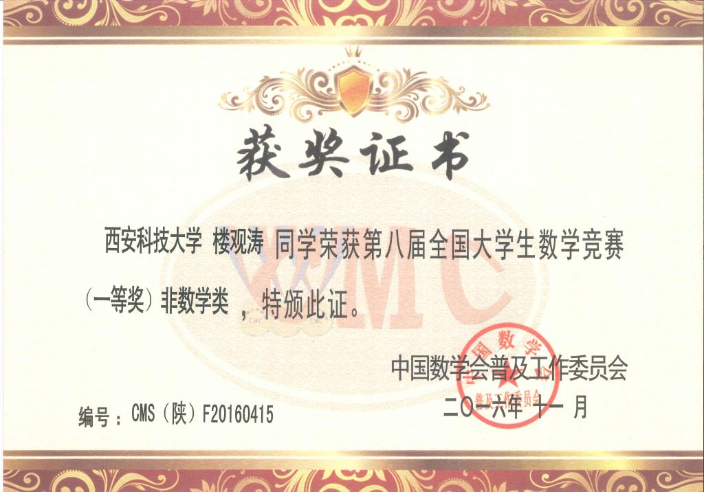 热烈祝贺必赢76net线路官网24名学子荣获第八届全国大学生数学竞赛大奖。其中楼观涛等8人获得一等奖,师振等3人获得二等奖,张力力等13人获得三等奖。祝贺他们取得佳绩,为机械学院学院争得荣誉。