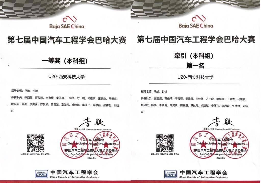 近日,全国第七届中国汽车工程学会巴哈大赛(Baja SAE China,简称BSC)落下帷幕。必赢76net线路官网教师马逾、钟斌指导的秦风车队在比赛中取得历史突破,荣获全国一等奖(本科组)和牵引(本科组)全国第一名的优异成绩。