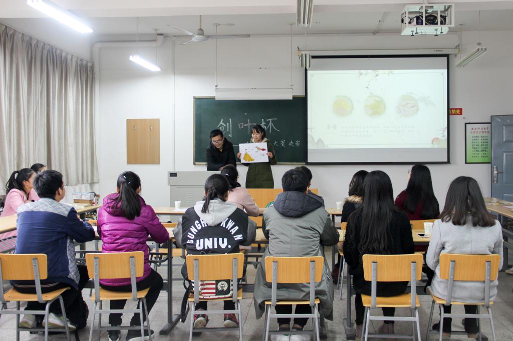 11月29日中午12:30,由必赢76net线路官网分团委学生会举办的落叶创意大赛在十教501教室落下帷幕,各年级辅导员及所有参赛人员共同参与了此次活动。
