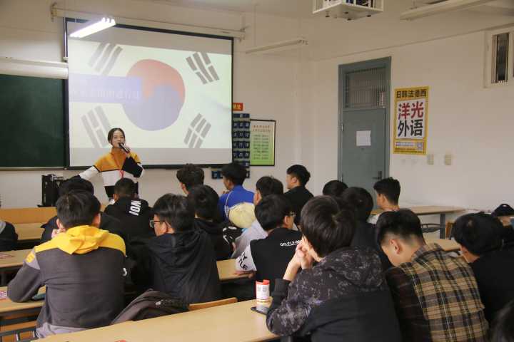 本次主讲的老师用自幽默风趣的教学风格带着同学们去了解多种外语的魅力,通过ppt上的图片让大家欣赏其他国家的美丽风景,引起了大家学习外语的强烈兴趣。老师也一直和同学们保持互动,让大家对外语的兴趣不断提升。