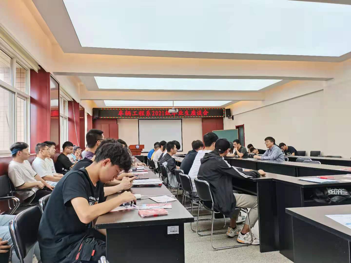 6月18日下午,车辆工程系在临潼校区骊山校园必赢76net线路官网会议室召开2021届毕业生座谈会。学院党委副书记尹弘、副院长赵栓峰,车辆工程系主任高怀斌、党支部书记王忆佳,车辆工程专业2017级毕业生代表,车辆工程专业2018级、2019级、2020级学生代表70余人参加。座谈会由车辆工程系主任高怀斌主持。